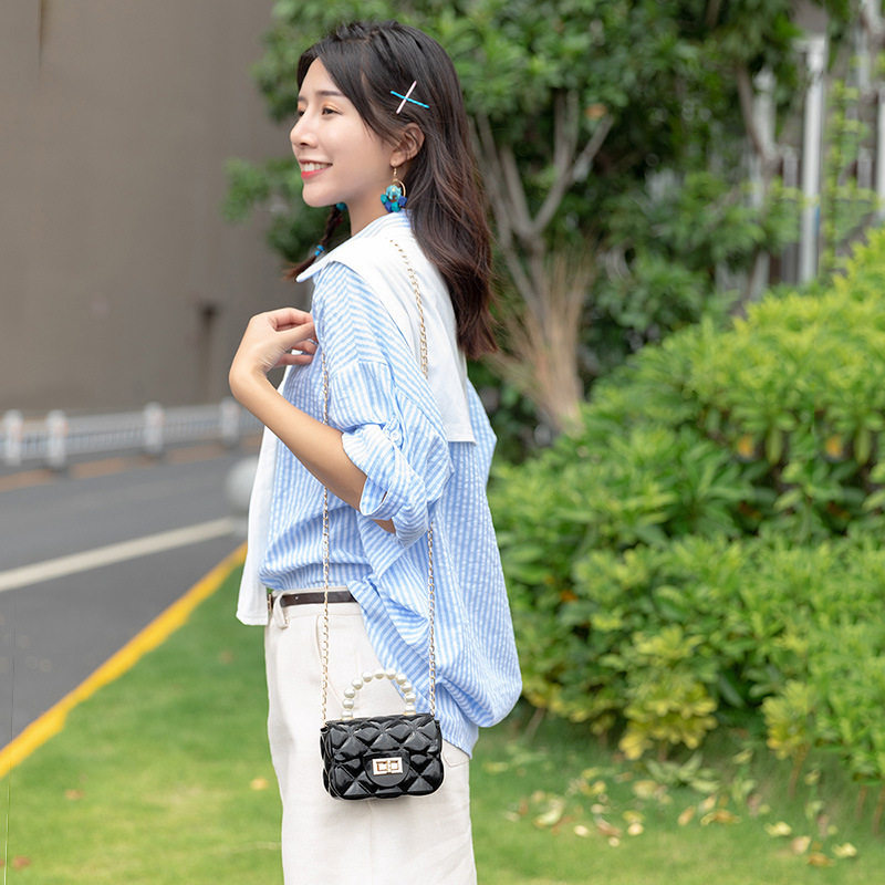 Little fragrance Dingga Pearl Chain Children's Bag Girl 2023 New Jelly Little Girl Mini-Slugged Chain Chain Chain Chain Chain Chain Chain