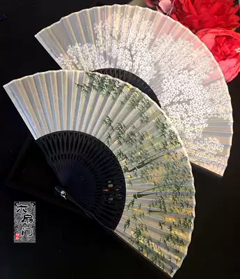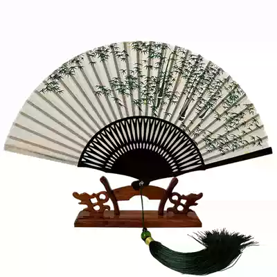 White Folding Fan Green Hollow Silk Women's Ancient Folding Fan Classical Bamboo Forest Portable Cherry Blossom Daily Fan
