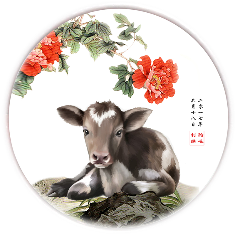 Semi-embroidered (using the hair to embroider the black part of the cow) is full of embroidery (the colorful pattern is also fully embroidered with silk thread)