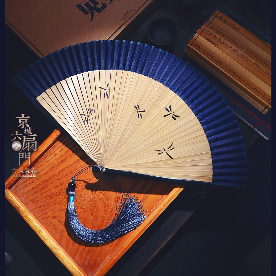 Chinese style gray dragonfly pure color silk bamboo fan summer Japanese folding fan folding women's dance fan