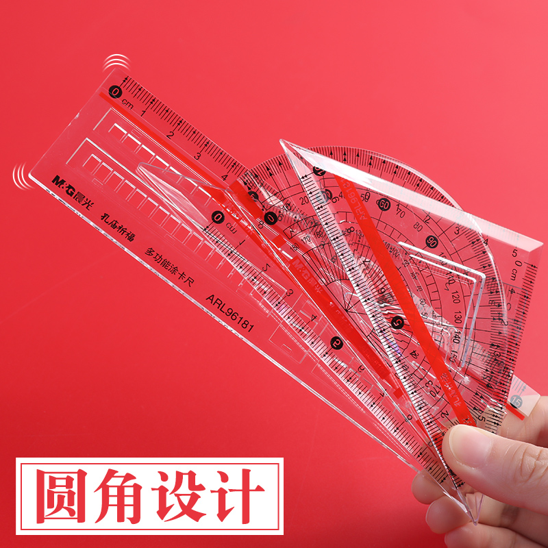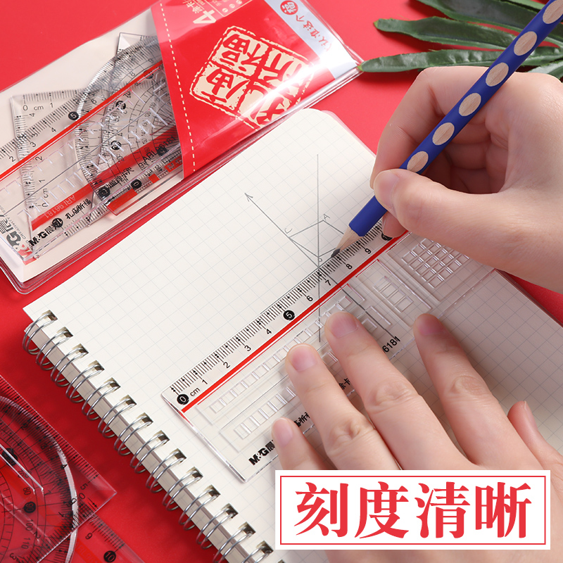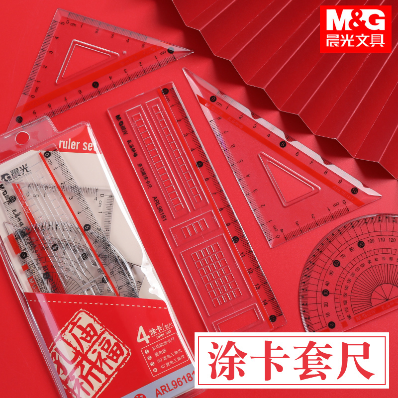 Morning light stationery Kong temple praying for students with coated cutting sleeve ruler examination special four pieces of trekted triangular ruler plastic ruler protractor drawing sleeve ruler cartography tool triangular plate 4 pieces of suit ruler