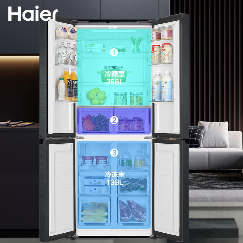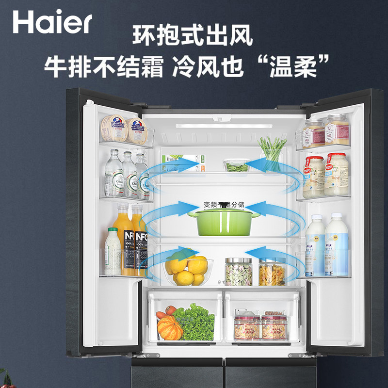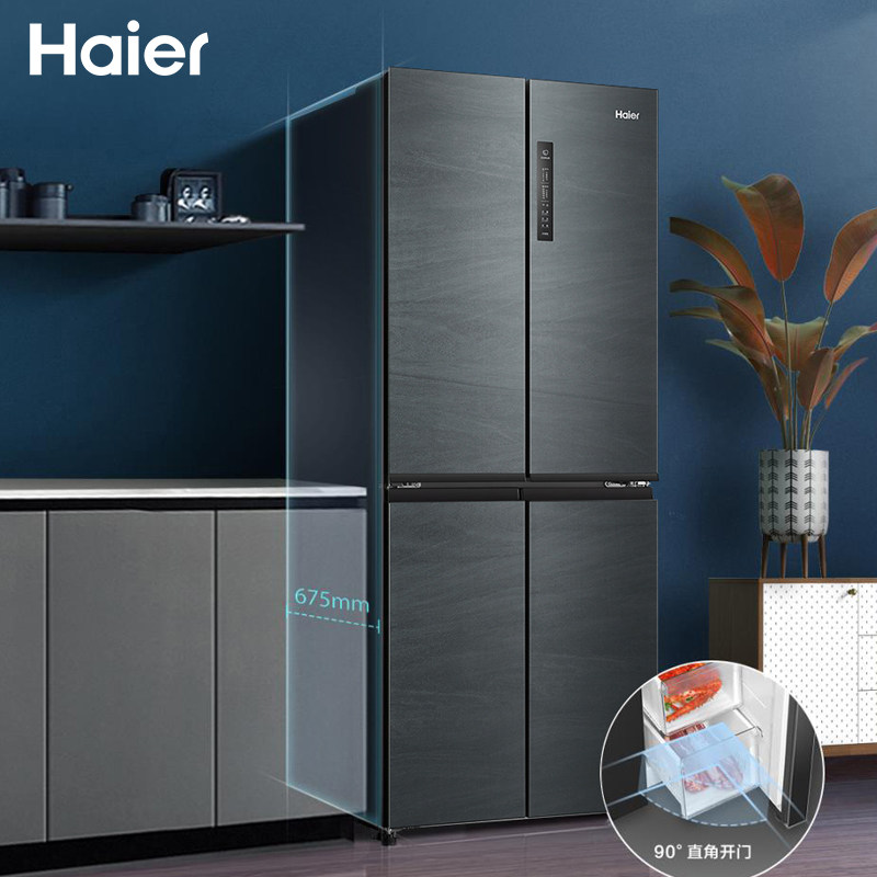 Haier refrigerator 405 liters cross four-door double switch first-class energy efficiency variable frequency household air-cooled frost-free ultra-thin refrigerator
