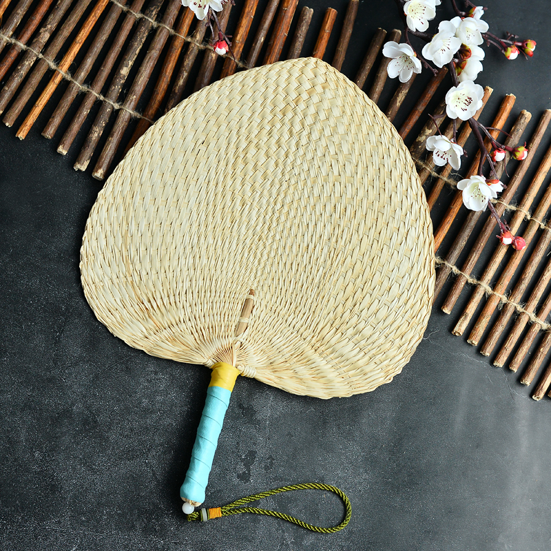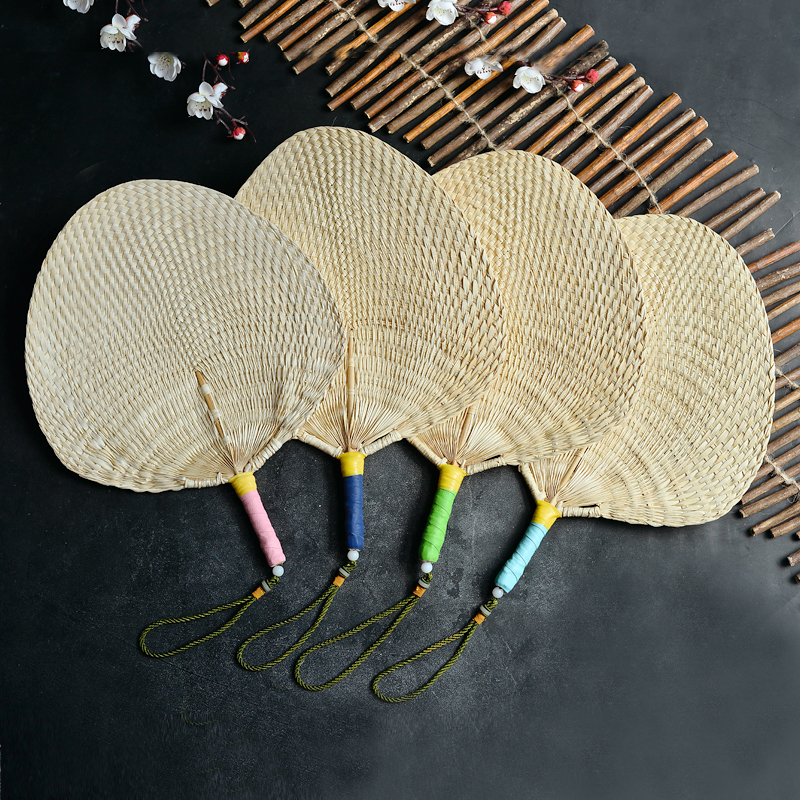 Pure hand-woven brown leaf fur retro nostalgia fan with baby fan children's toys carrying
