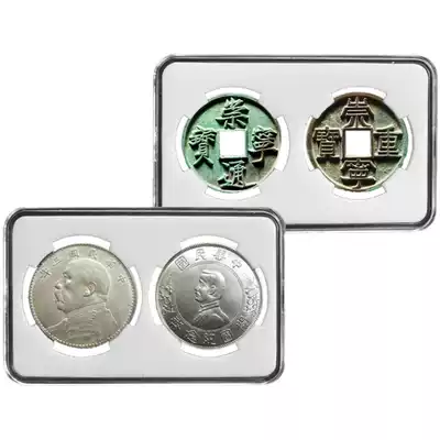 TGG Northern money yuan Datou silver collection box coins Chongning box two 2 with a copper coin hollow transparent box
