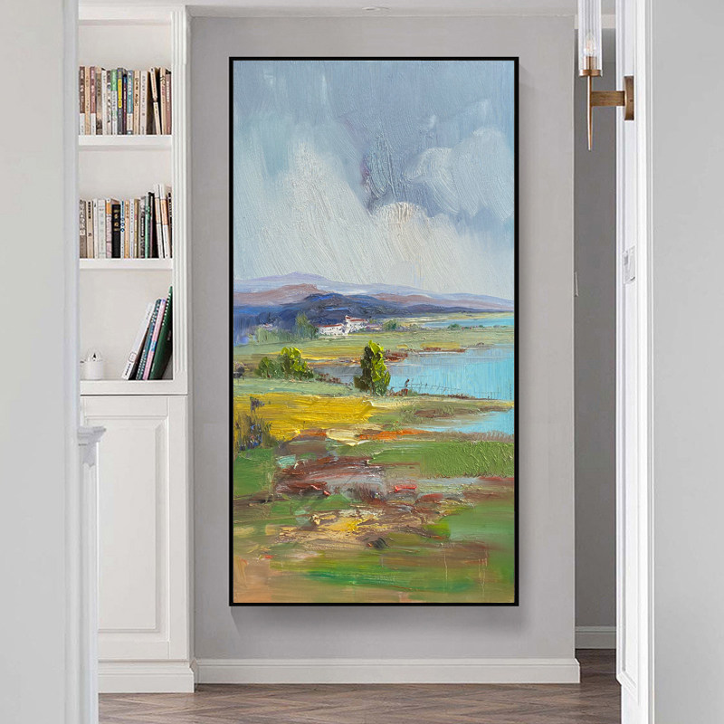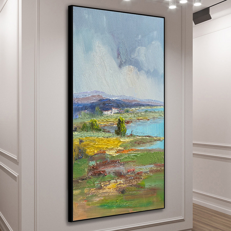 Entrance pure hand-painted oil painting vertical version corridor aisle end hanging painting three-dimensional impression landscape decorative painting light luxury mural