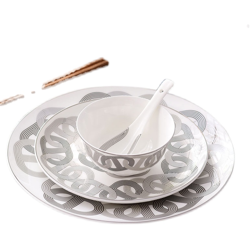 Silver runway - four-piece set (large plate + cup and saucer) silver runway - 10 inch plate silver runway - 8 inch plate silver runway - one cup and one plate silver runway - bowl silver runway - spoon single cup and saucer gift box