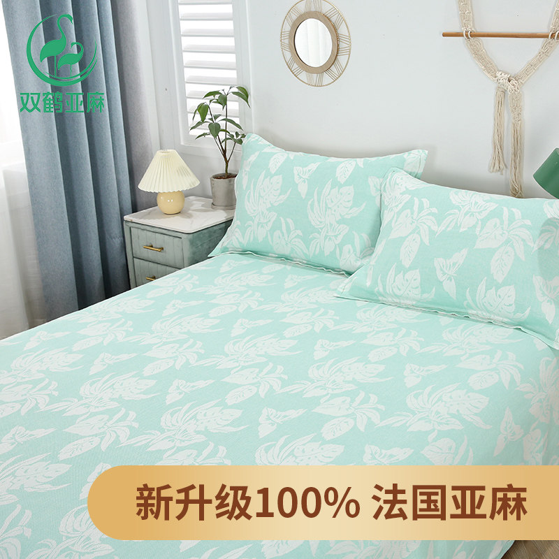 Double crane linen mat three-piece set of pure linen foldable washed soft mat double 1 5m1 8m bed 2 0 summer