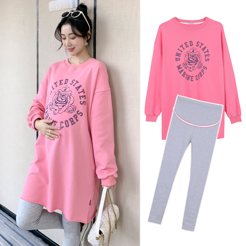 Pregnant women spring net red suit fashion models 2021 small cartoon blouse t-shirt women spring and autumn fashion dress