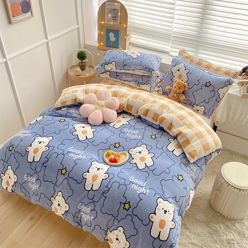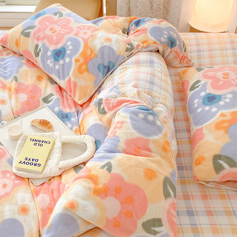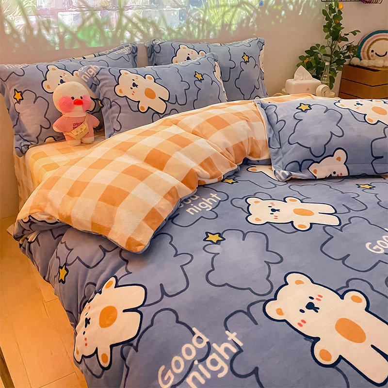 Multi Love Thickened Warm Suede Warm Four Sets Winter Coral Suede Flannel Suede Three-piece Bedding Kit