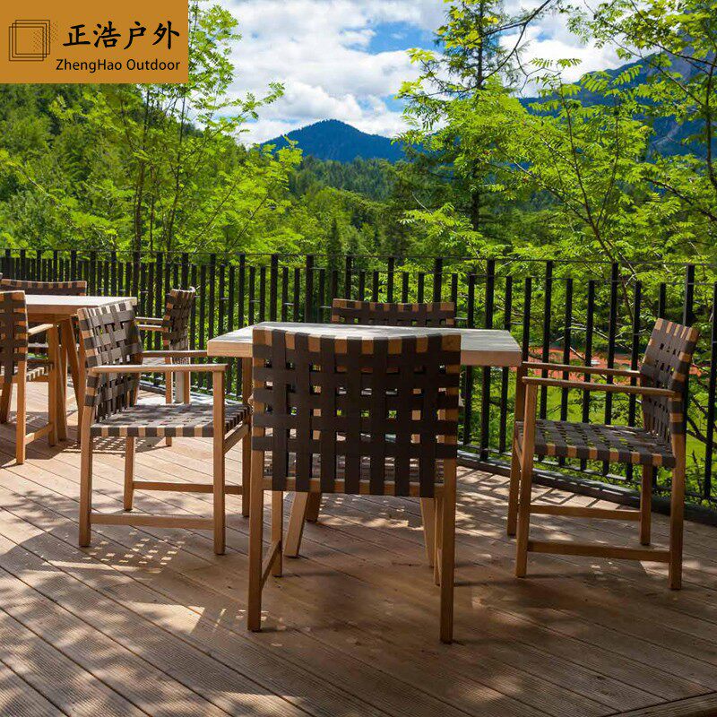 Outdoor table and chairs Embalming Wood Balcony Patio Villa Garden Hotel Open Air Casual Vines Chair Designer Solid Wood Furniture
