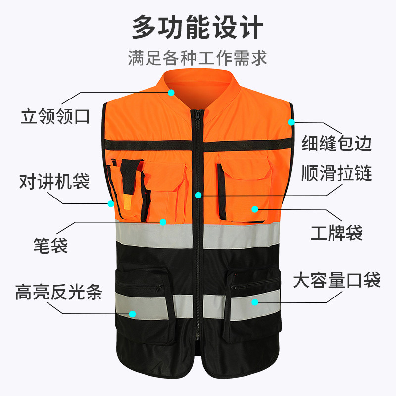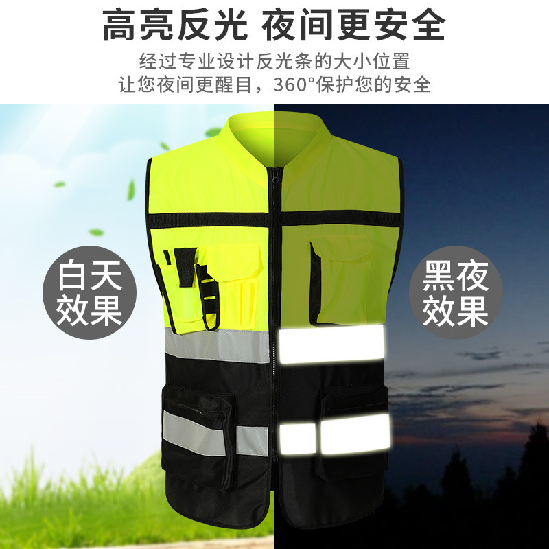 Reflective Vest Custom Waistcoat Safety Clothing Traffic Engineering Sanitation Ride breathable Fluorescent Clothing Print logo
