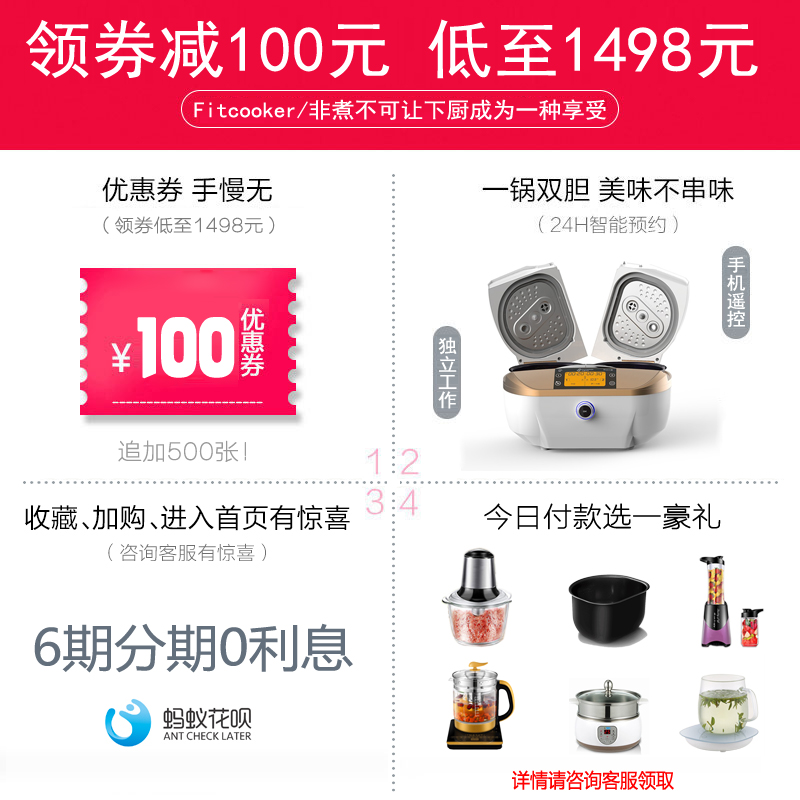 Non-cooking non-FitCooker Double door electric cooker Home Double biliary body Intelligent fully automatic appointment 6 Electric boiler 4L