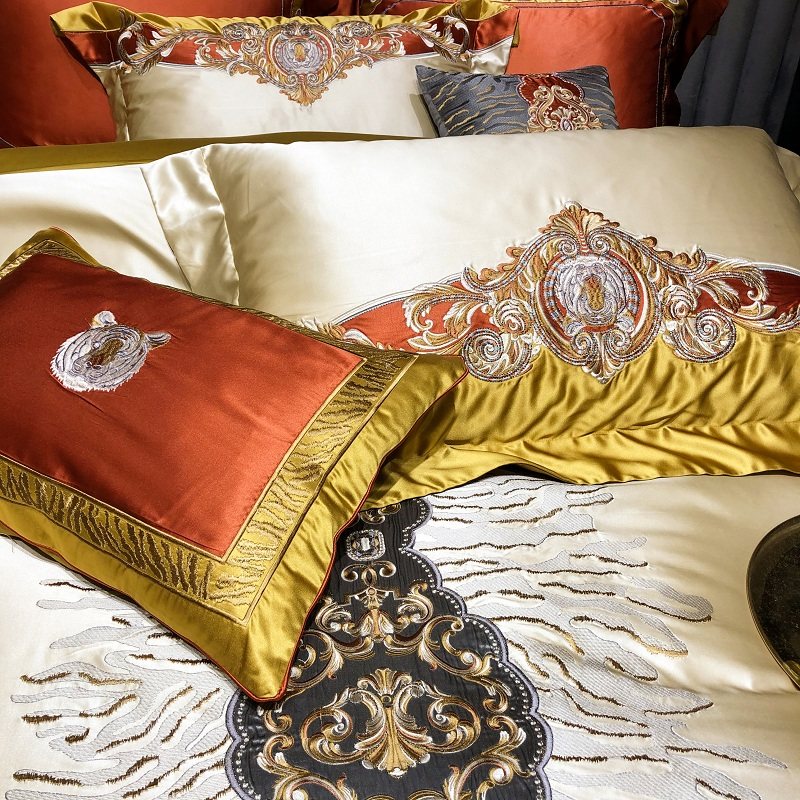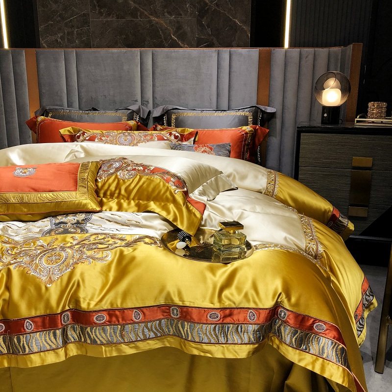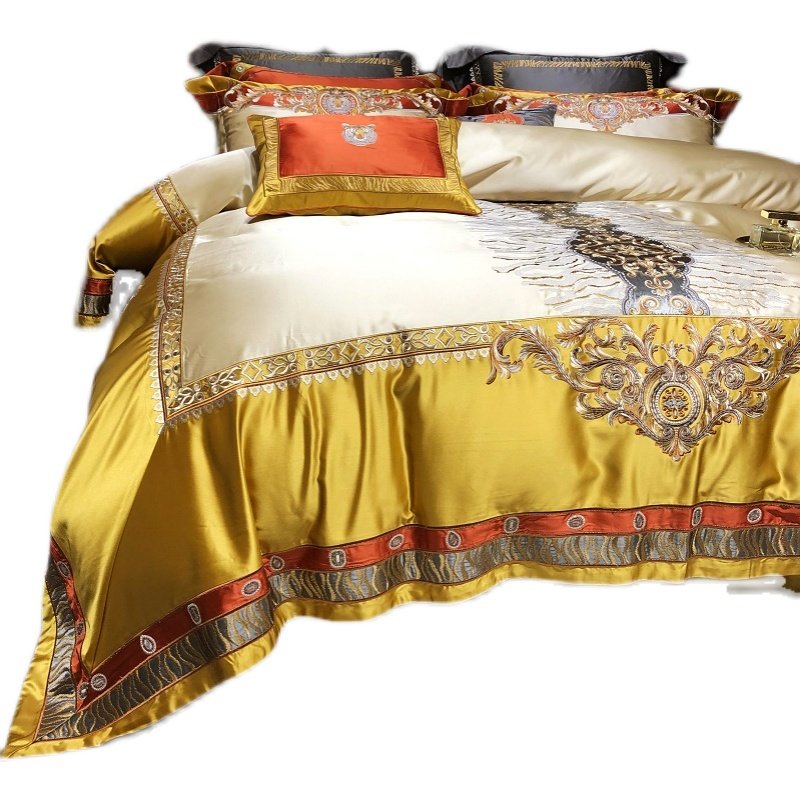Eurostyle Palace Embroidery 140 Tribute Satin Genuine Silk Cotton Four Sets Golden Villa-Like Board Room 1 8 Bed Cover A Dozen Sets