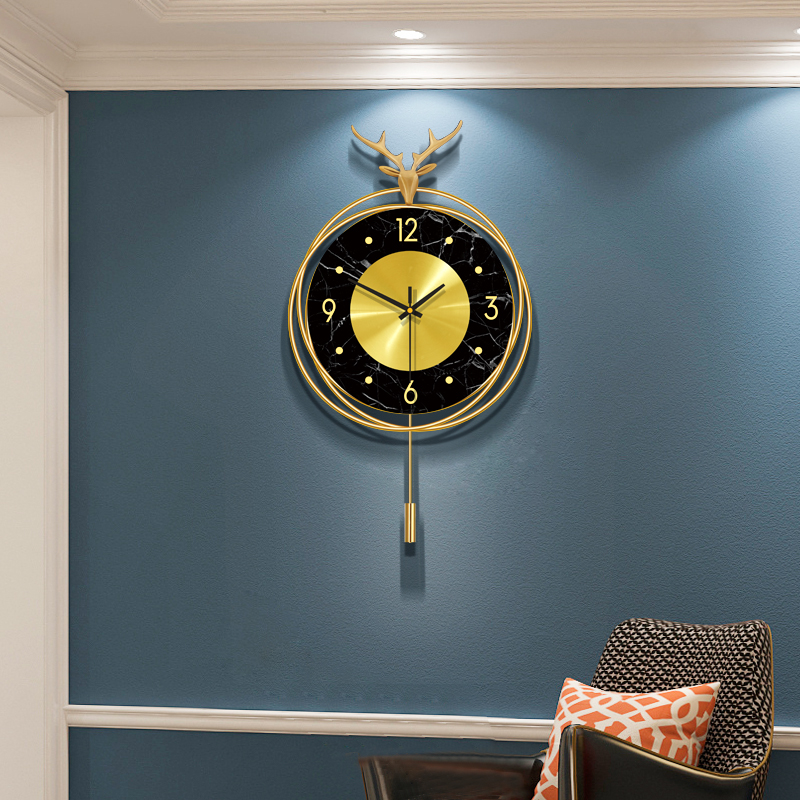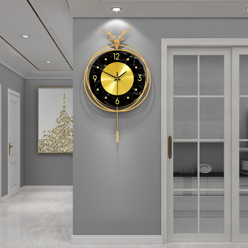 Light extravagant hanging clock Living room Home Fashion modern minimalist Nordic deer head and watch personality creative decoration hanging wall clock