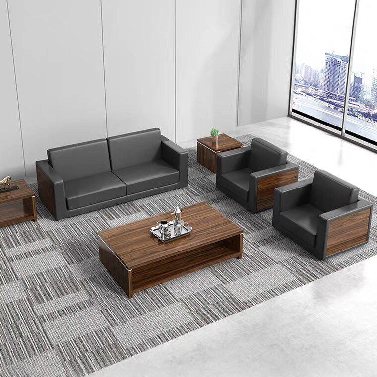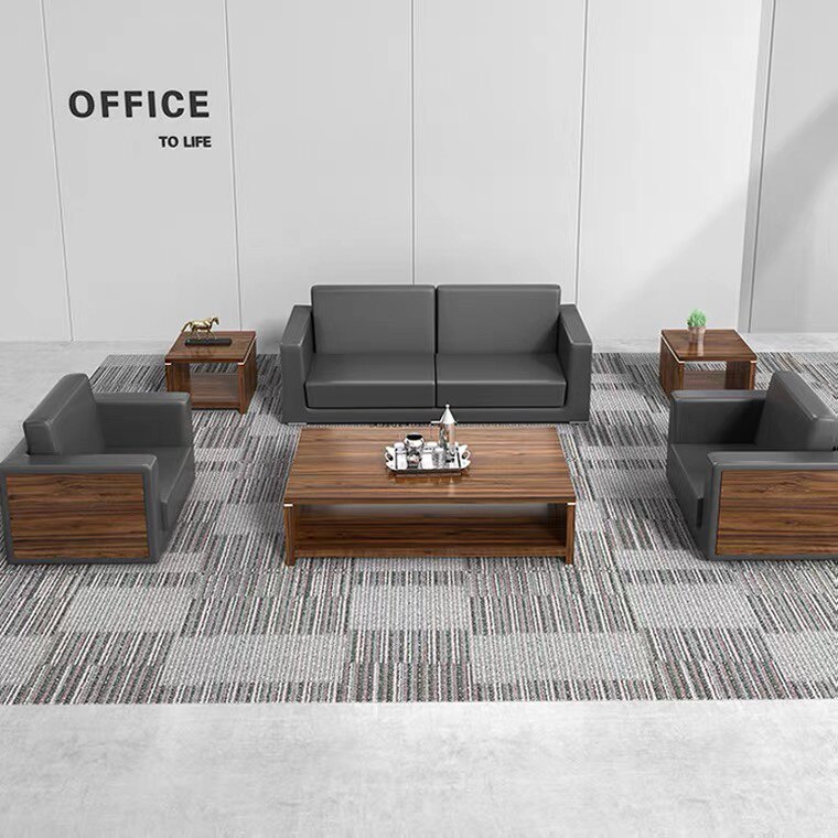Office sofa simple modern business reception leather sofa coffee table combination office reception single three people