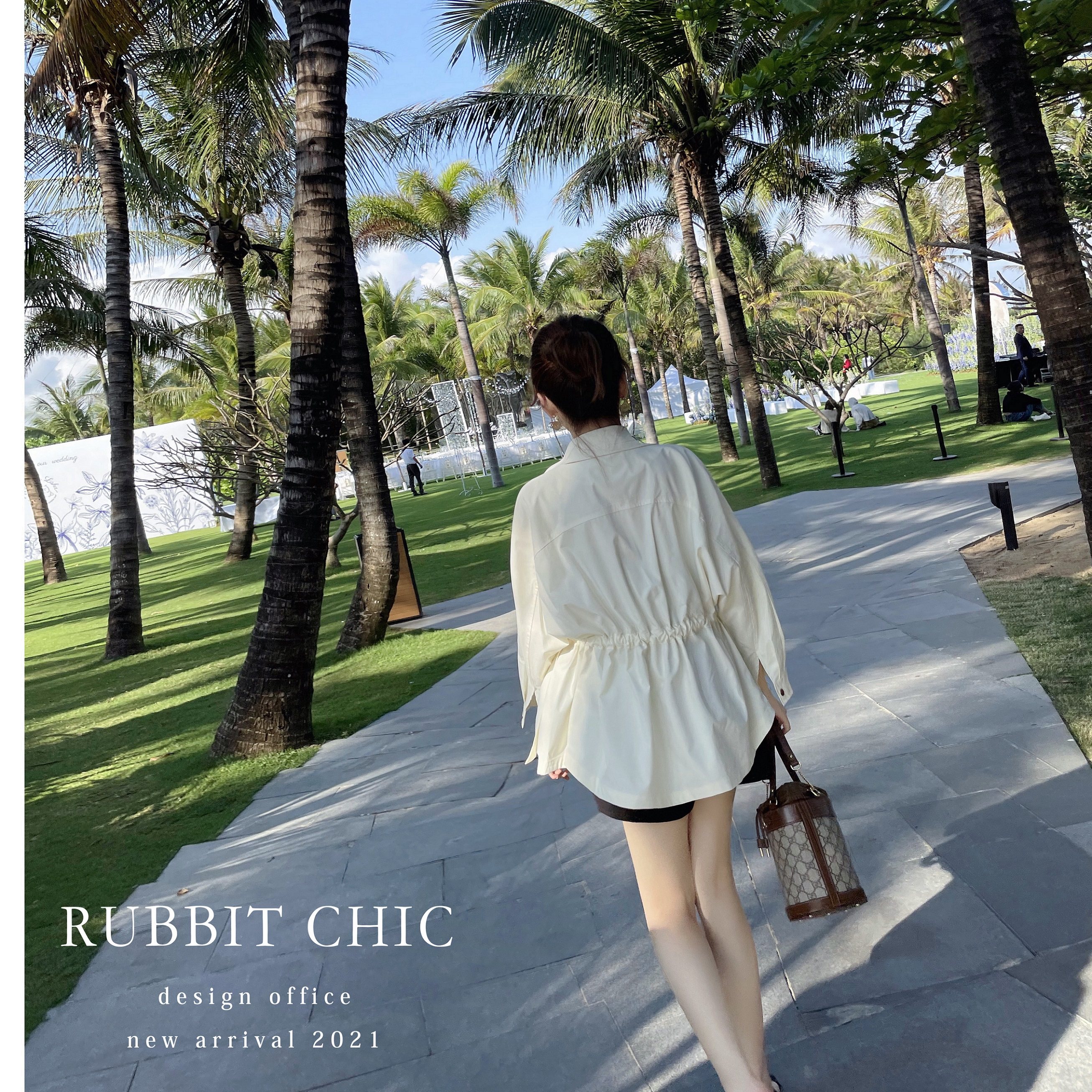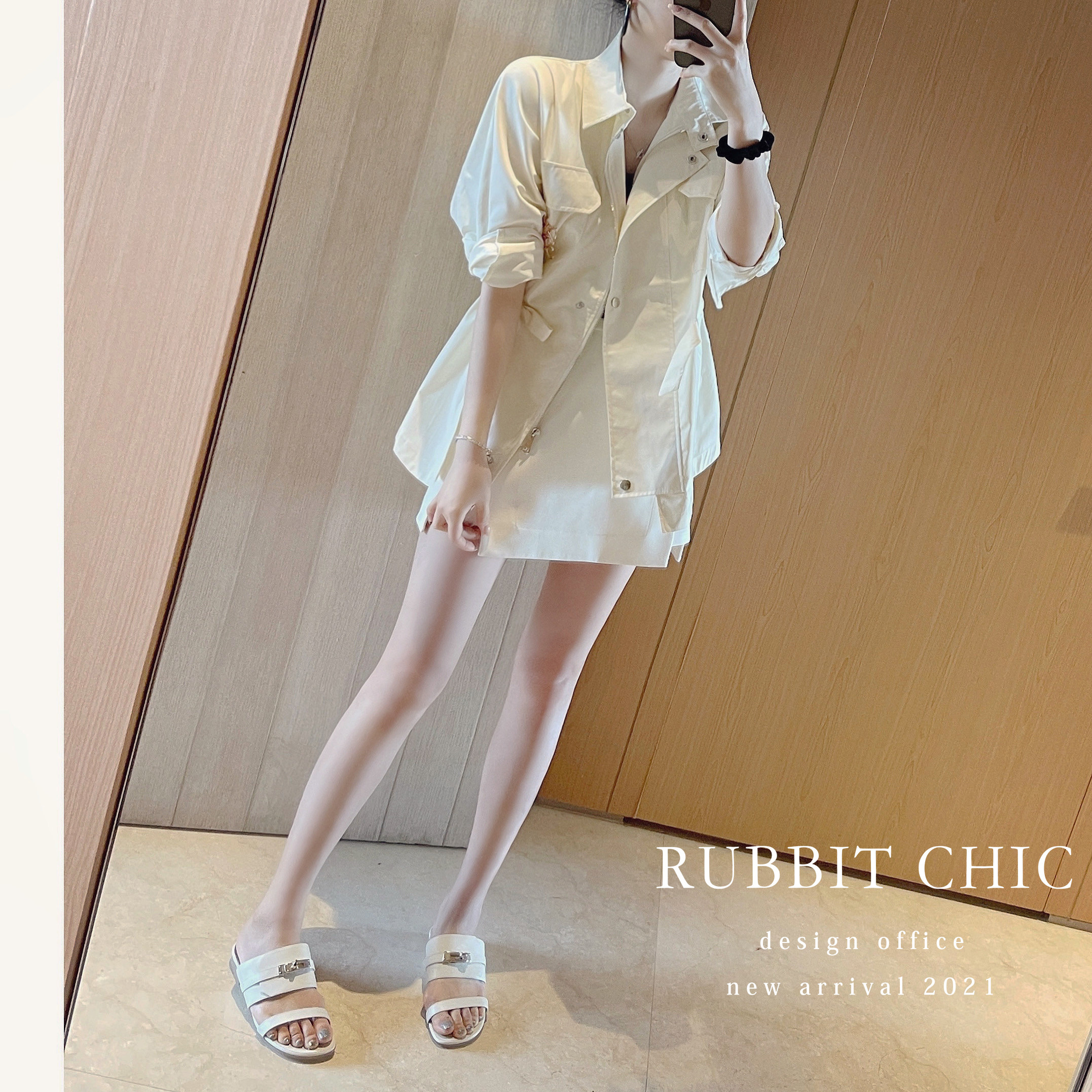Rubbit chic2021 spring new product playful white ~ casual fashion medium long solid color trench coat