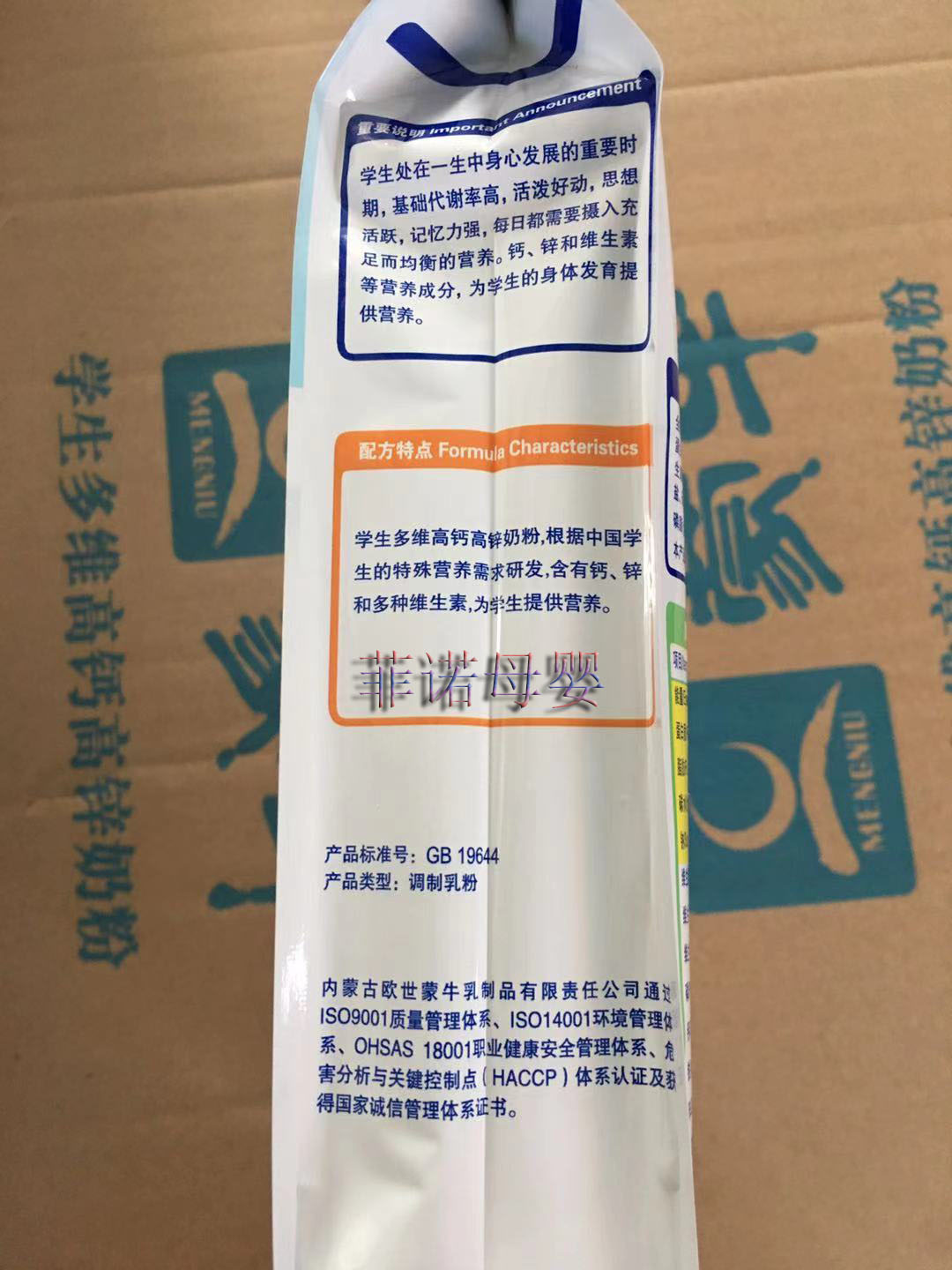 January, 22 Production of Mengniu milk powder Mengniu students Multidimensional High Calcium High Zinc Milk Powder 400 gr 6 bags