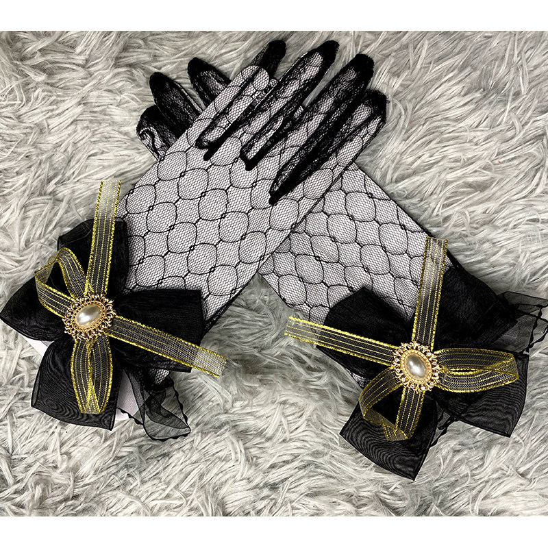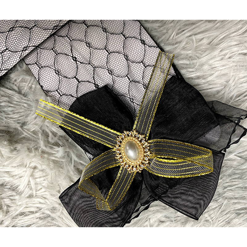 Black mesh yarn butterfly knot gold drill
