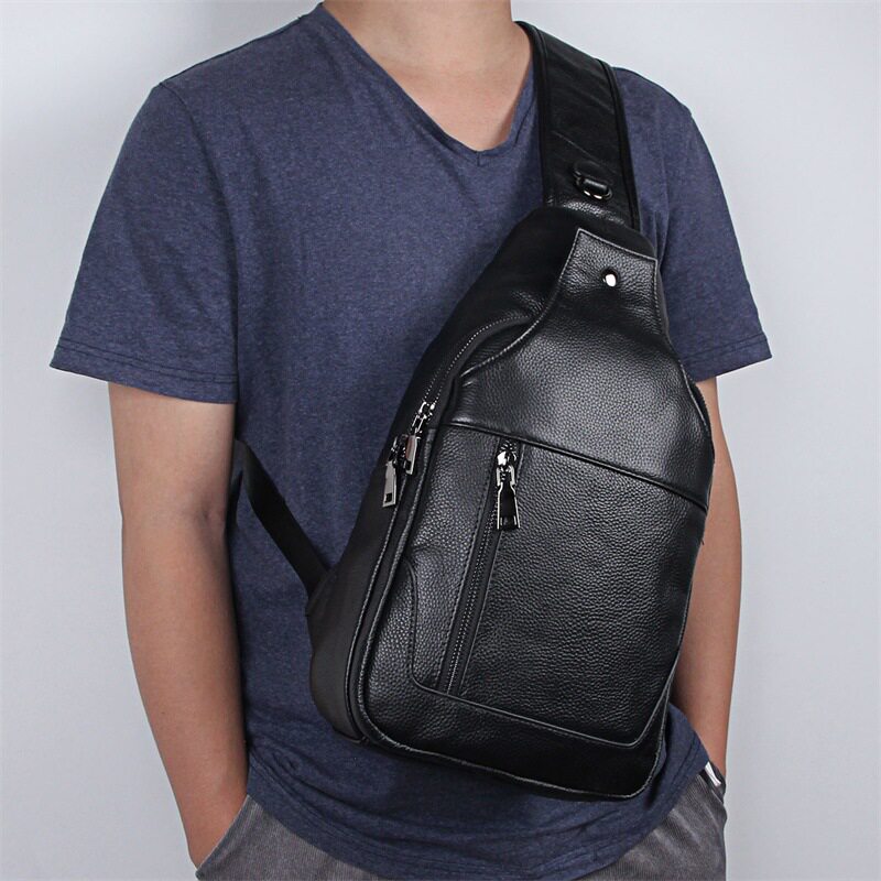 Men's bag Obliquely Satchel Bag Business Genuine Leather Head Layer Bull Leather Trendy Chest Bag Soft Leather Large Capacity Casual Large Size Chest Bag