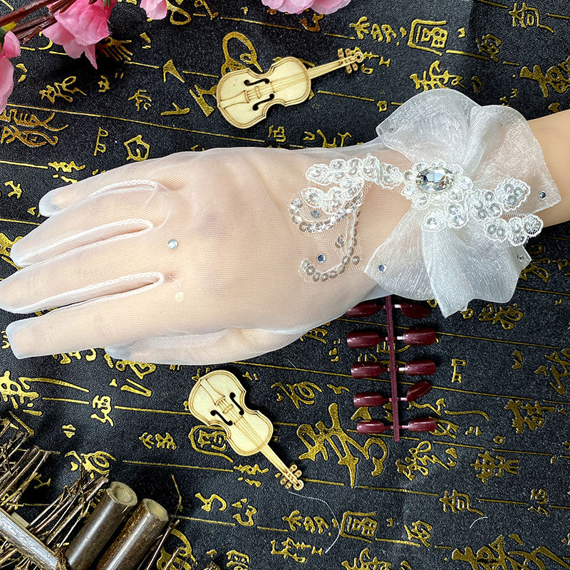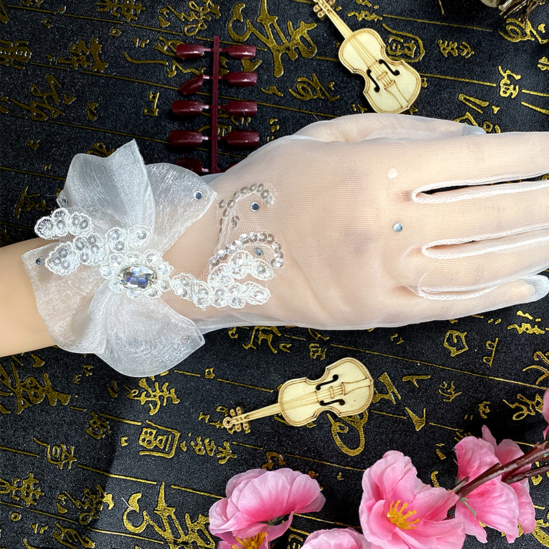 Korean wedding dress bride marriage lace short five fingerdress dress accessories spring and summer lace gloves photograph
