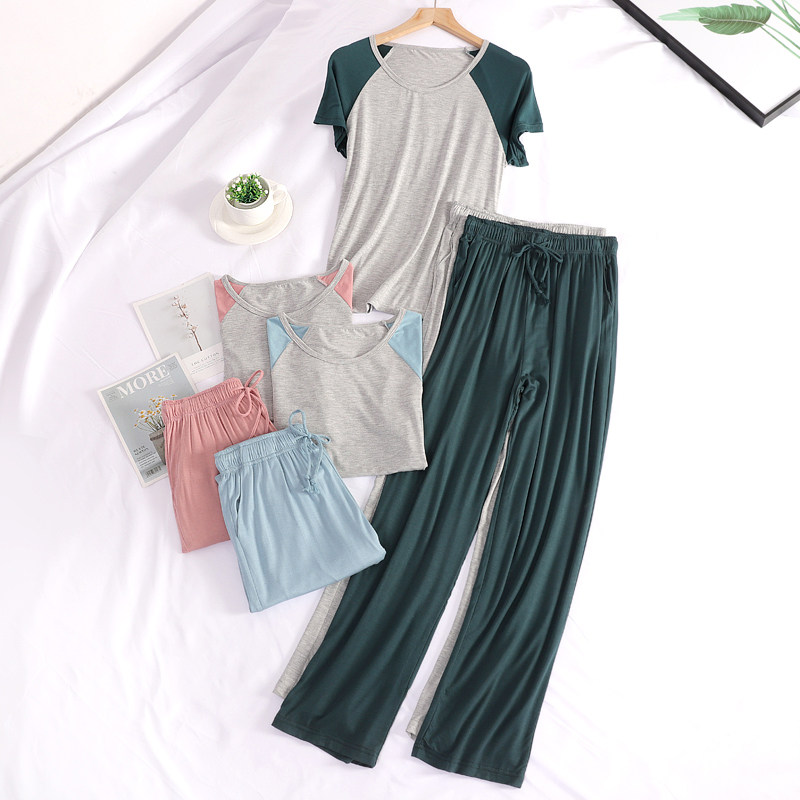 Modal pajamas women's thin loose large size short-sleeved trousers can be worn outside in summer sports homewear suits summer - Taobao