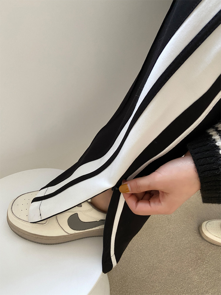 South Korea 2023 Spring Cross Strip Sports Pants Girl Light Broad Legs Pants Fat Sister Clothing Tide