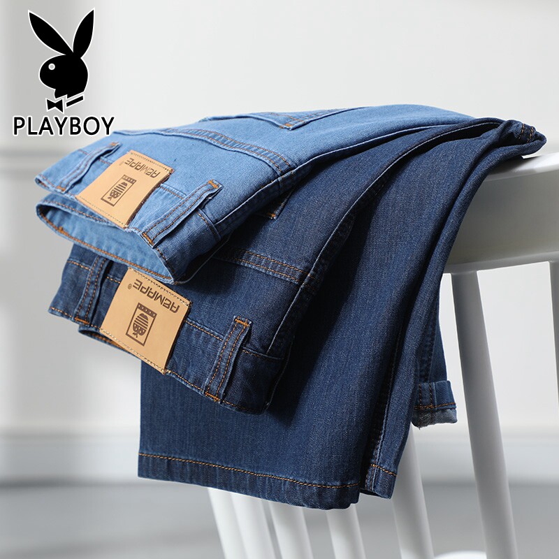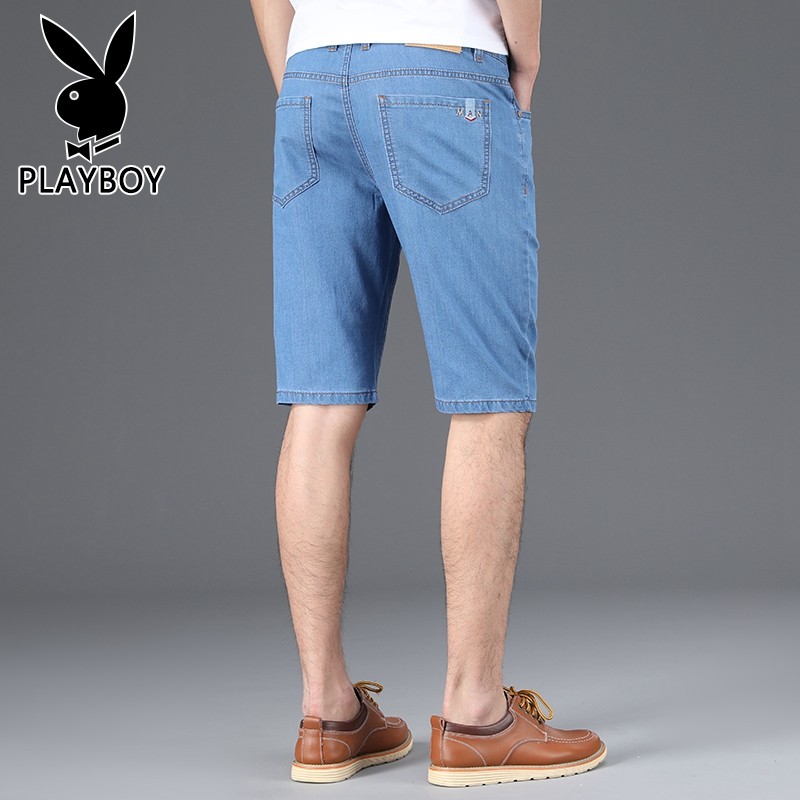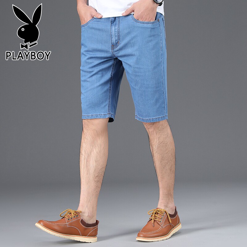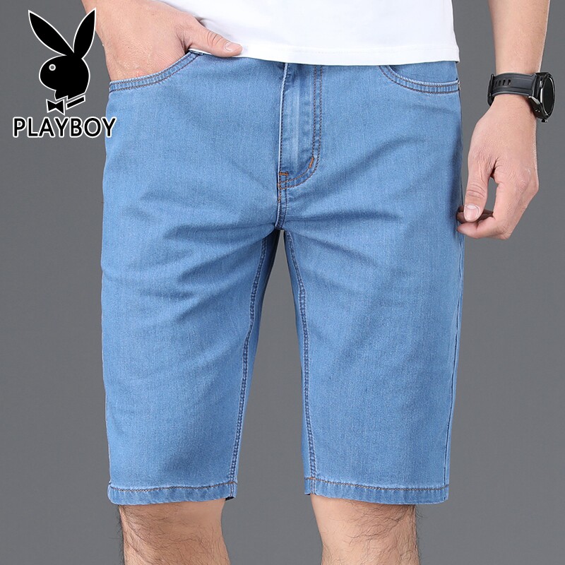 Playboy denim shorts men's summer outer wear cropped pants middle-aged and elderly men's loose straight casual five-point pants