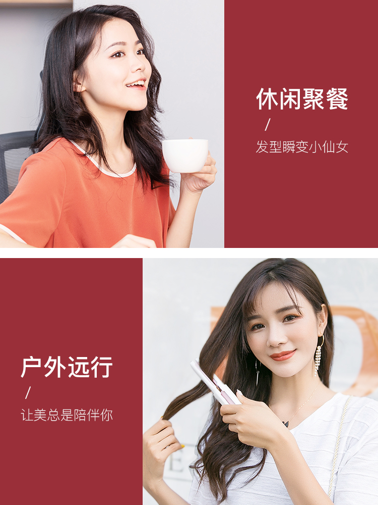 Japan Dona Wireless Curly Haired Stick USB Charging Mini Small Portable Small Plywood Straight-volume Dual-Use Straight Plate Clip