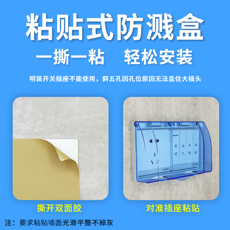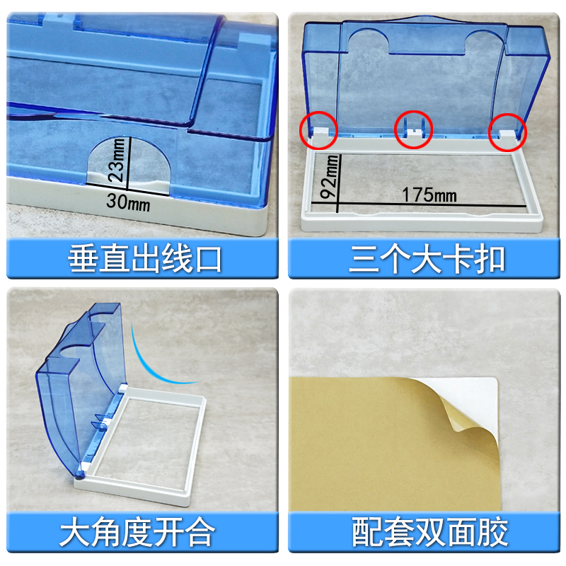 Two-level adhesive blue double 86 type transparent protection cover splash case Two waterproof case switch socket waterproof cover