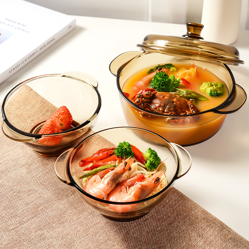 2 pieces of Nordic tea colour glass breakfast oat cup large capacity Home heat resistant salad bowl with large belly water cup