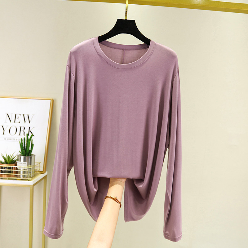 Women's long-sleeved T-shirt summer thin section Korean version plus fertilizer plus size shirt new early autumn modal T-shirt loose top