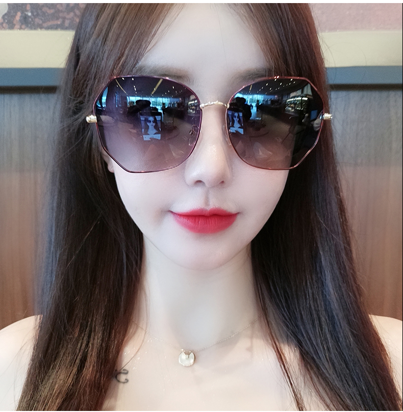 Hong Kong I Tgreg sunglasses women's new anti-UV polarized sunglasses tea colour driving round face with large face