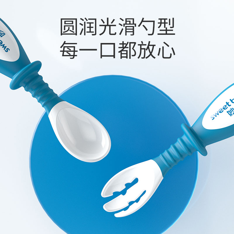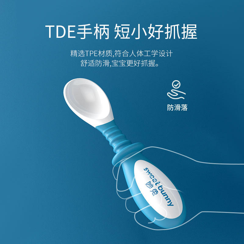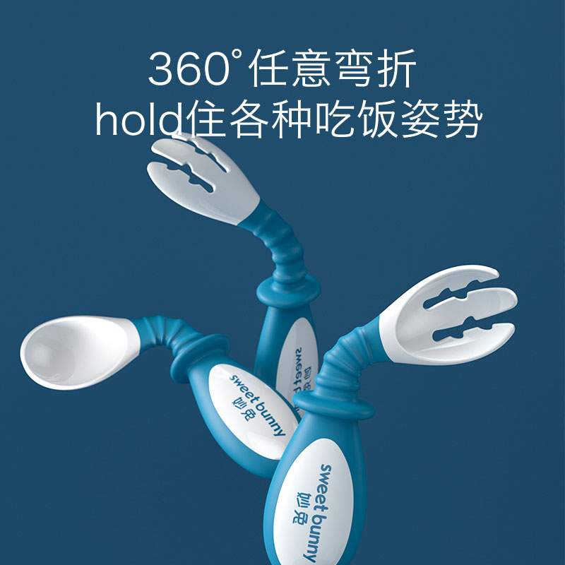 Inexplicable Rabbit baby spoon Learn to eat training spoon curved elbow fork spoon suit Children's baby accessory cutlery One year old
