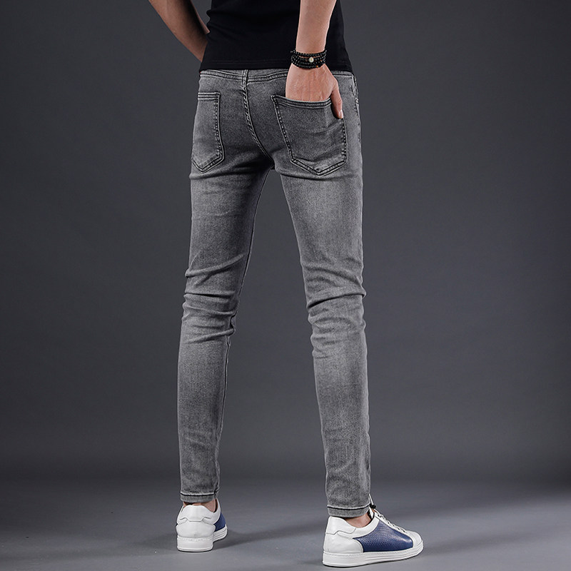Smokey gray jeans men's trend summer thin section high elastic self-cultivation slim feet thin men's pants