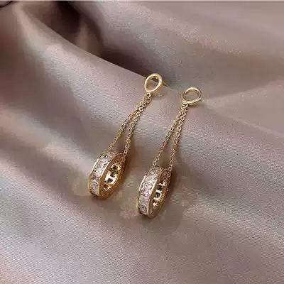 Korean high-grade atmospheric fashion earrings female temperament long version earrings Diamond Net red design sense ear decoration tide