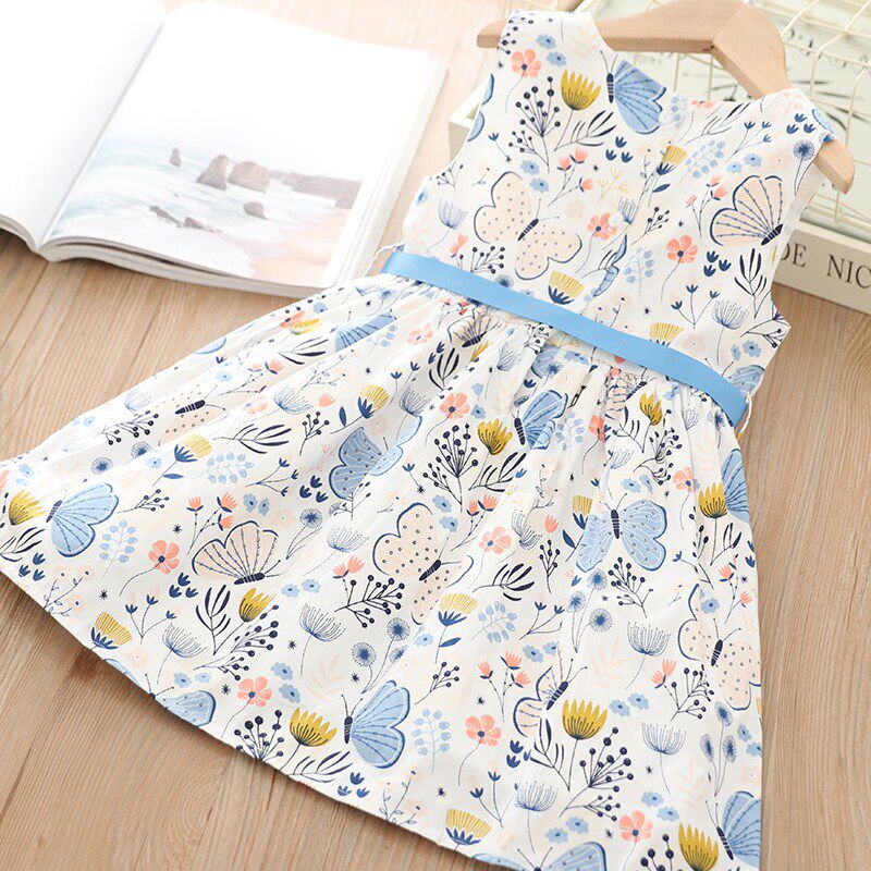 2022 Summer Children's Clothing Trend Children's Floral Dress Girls Cotton Butterfly Printed Princess Dress