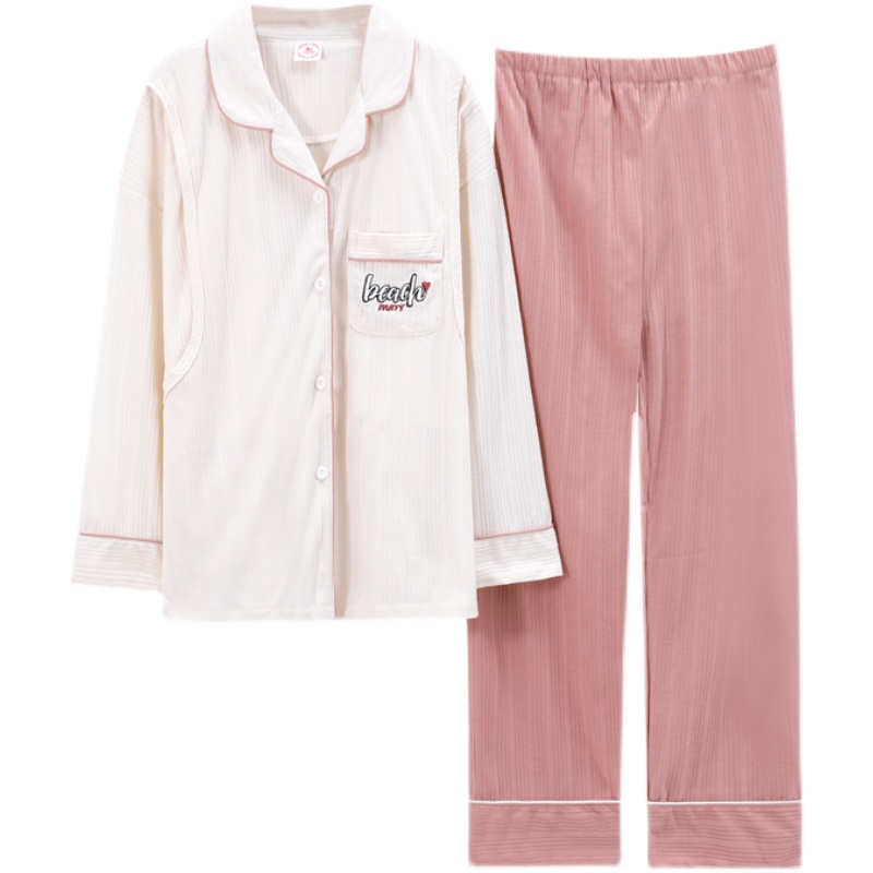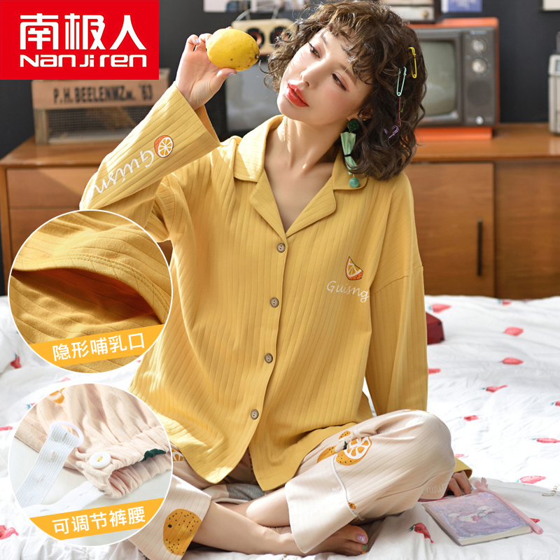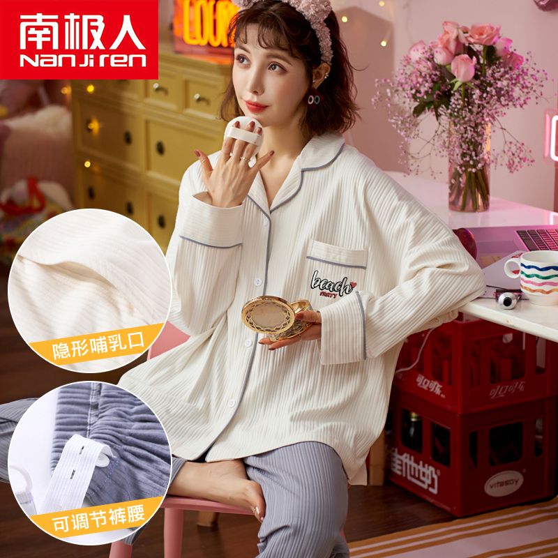Moon clothes spring and autumn pure cotton large size autumn nursing maternity pajamas Women's summer thin section 9 October postpartum
