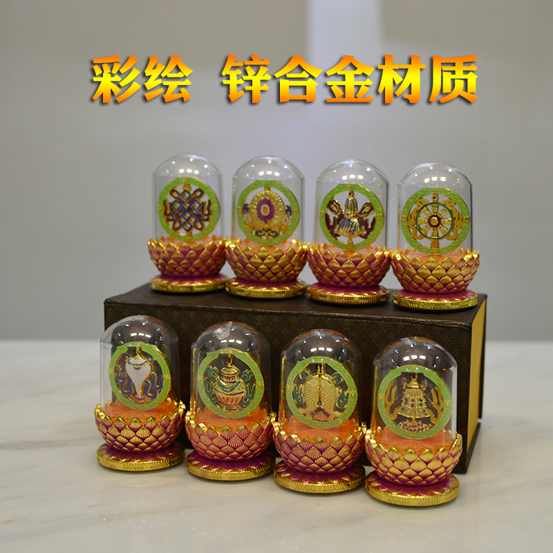 Buddha's Hall is dedicated to the Mercy Zinc-Zinc Alloy Painted auspicious Eight Treasure Accessories Lotus Seat Eight Auspicious