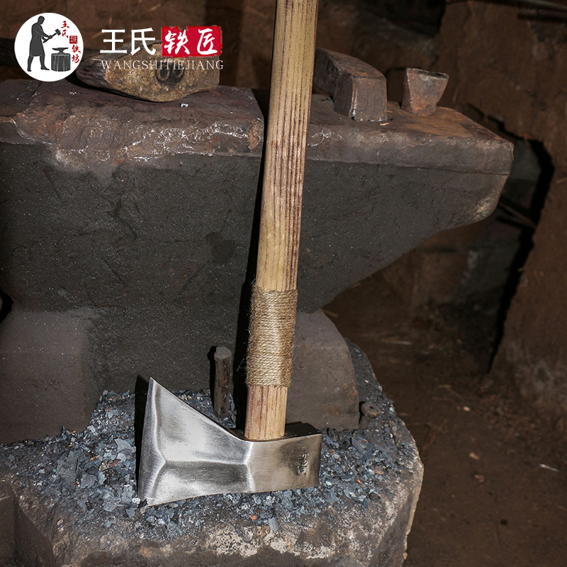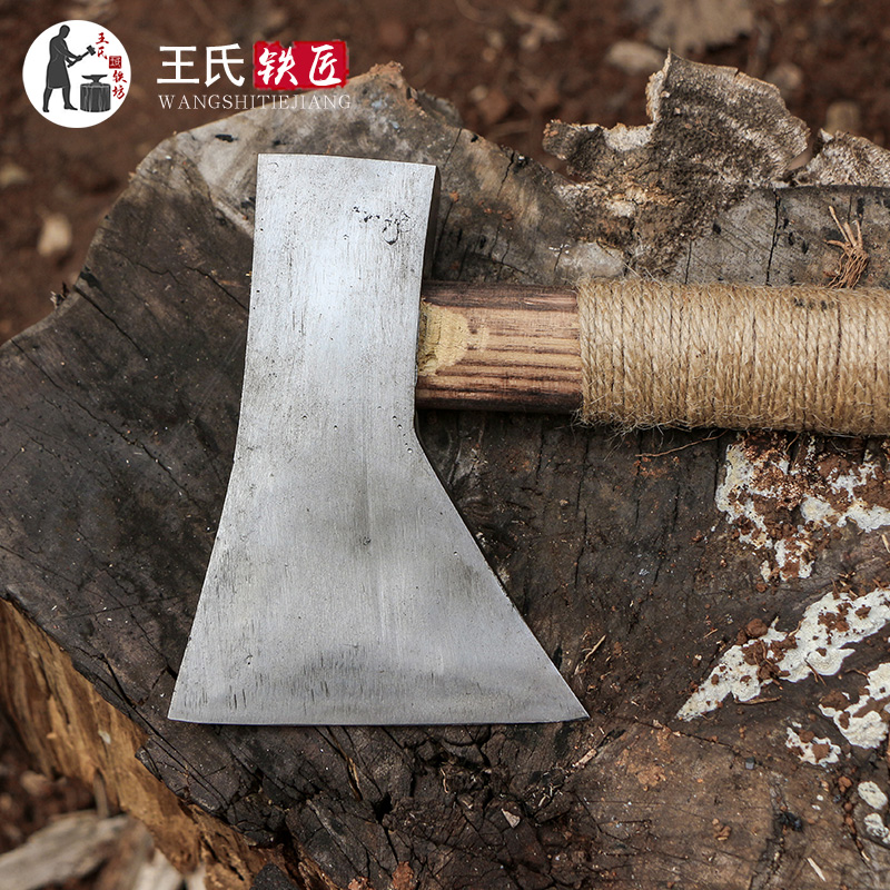 Wang's blacksmith Wang Rongshan traditional hand-clamped steel top carpenter axe paste steel axe high manganese steel woodworking single-sided axe