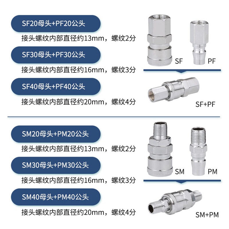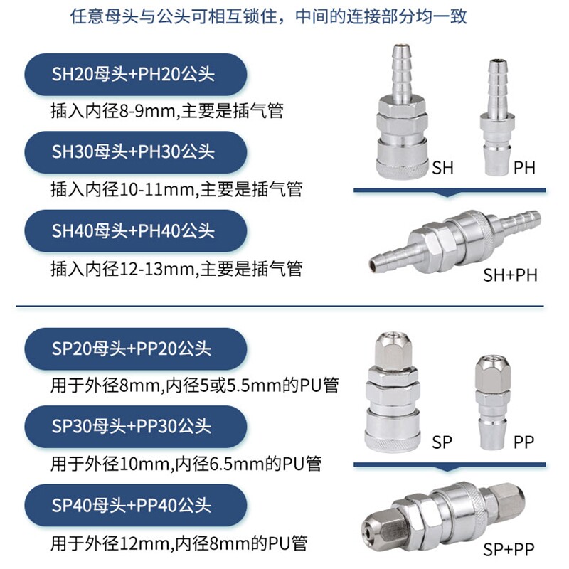 Iron chrome-plated type is non-self-locking connector Pearl nickel-plated type is self-locking connector---- PP20 SP20 (2 sets) PP30 SP30 (2 sets)