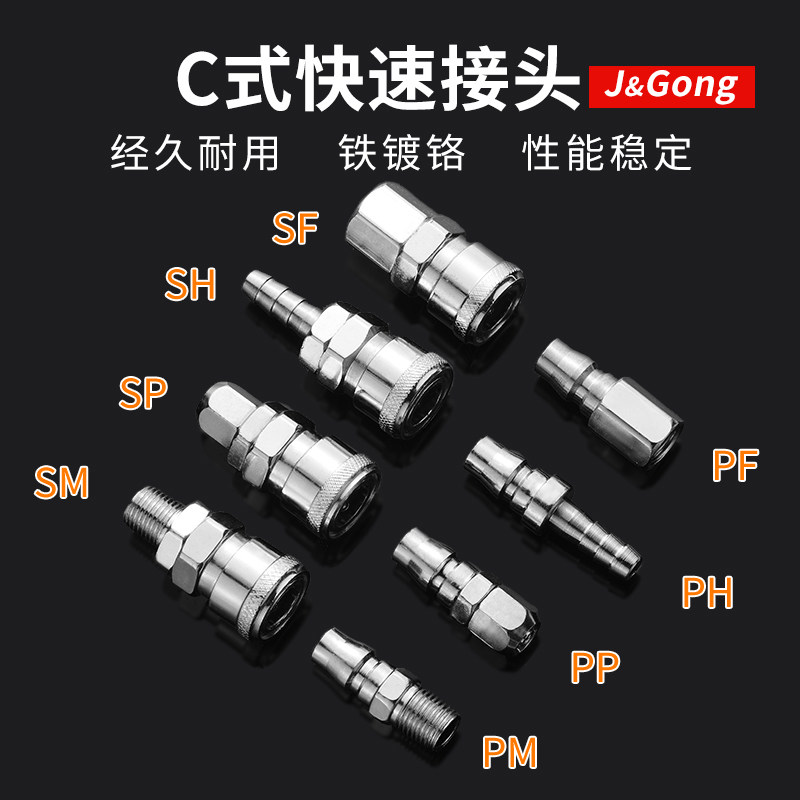 Iron chrome-plated C-type quick connector trachea air gun air pipe air pump air compressor male head female head pneumatic connector