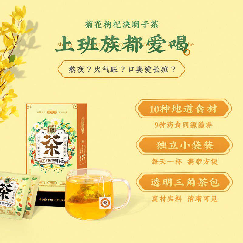 1 box 80g total of 20 packs (hand 29 9 boxes) -- Chrysanthemum Medlar Semen Cassiae Tea (Send Cup Spoon) 2 Boxes 160g Total of 40 bags (hand 24 9 boxes) -- chrysanthemums