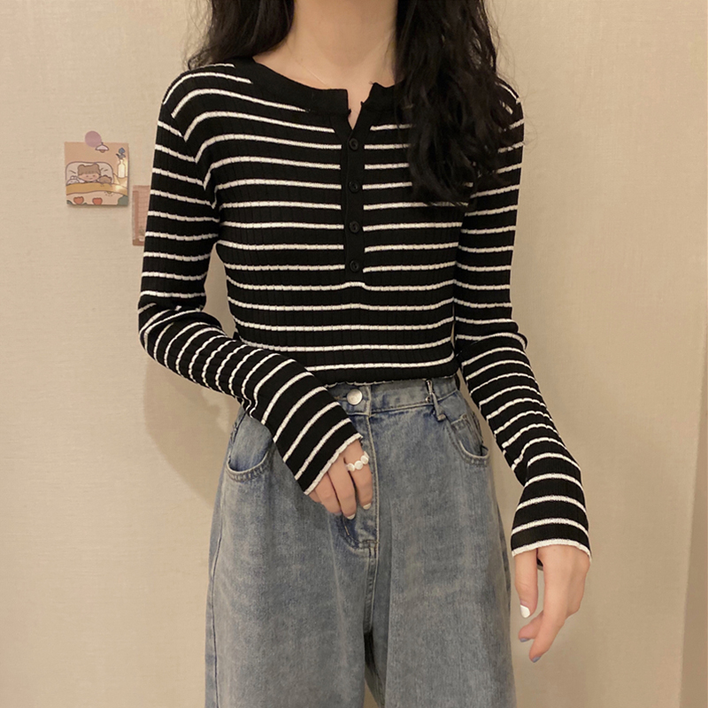 Spring and Autumn 2022 V - collar streak knitted shirts with a thin - tight style menu