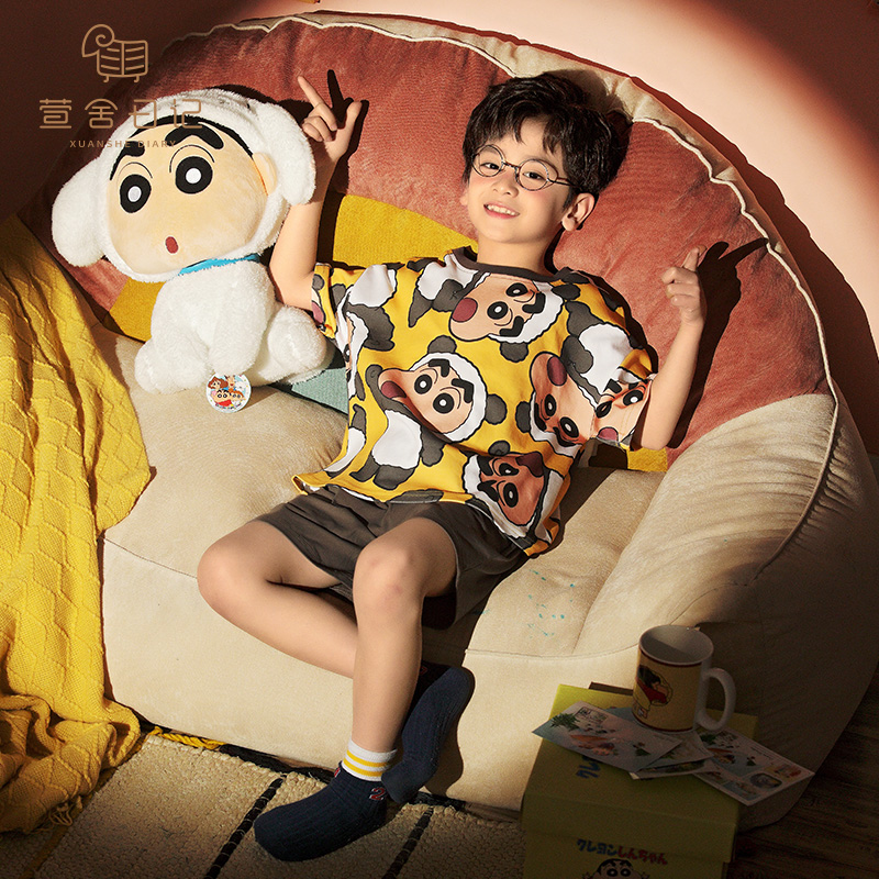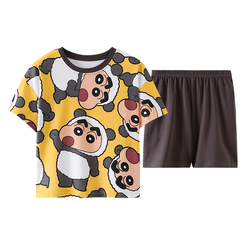 Craypen Small New Summer Children Sleepwear Boy Pure Cotton Short Sleeve Cartoon CUHK Child Student Thin home Suits Suit