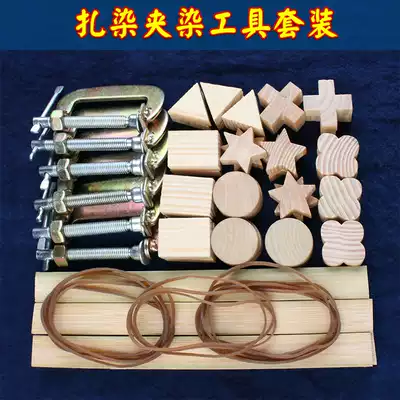 Clip dyeing tool A set Clip dyeing tool B set Clip dyeing tool C set Small G-shaped clip 1 modeling small wooden block 6 pairs of large bamboo splint 1 pair of medium rubber band 10 tie-dye dyes 25 grams
