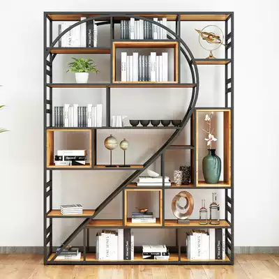 Creative wrought iron bookshelf shelf Floor-to-ceiling art living room display rack bookcase office screen Industrial wind partition