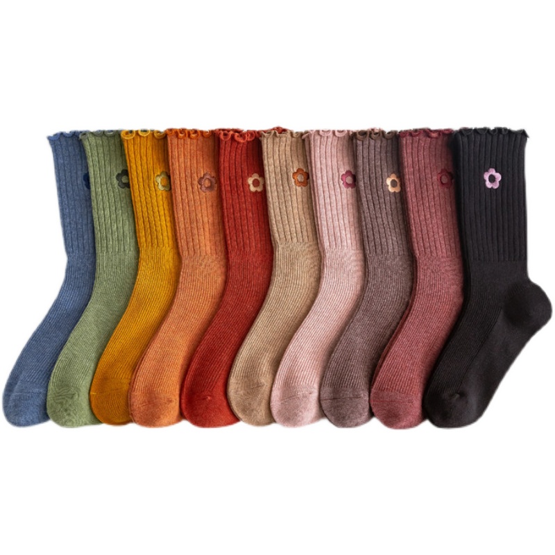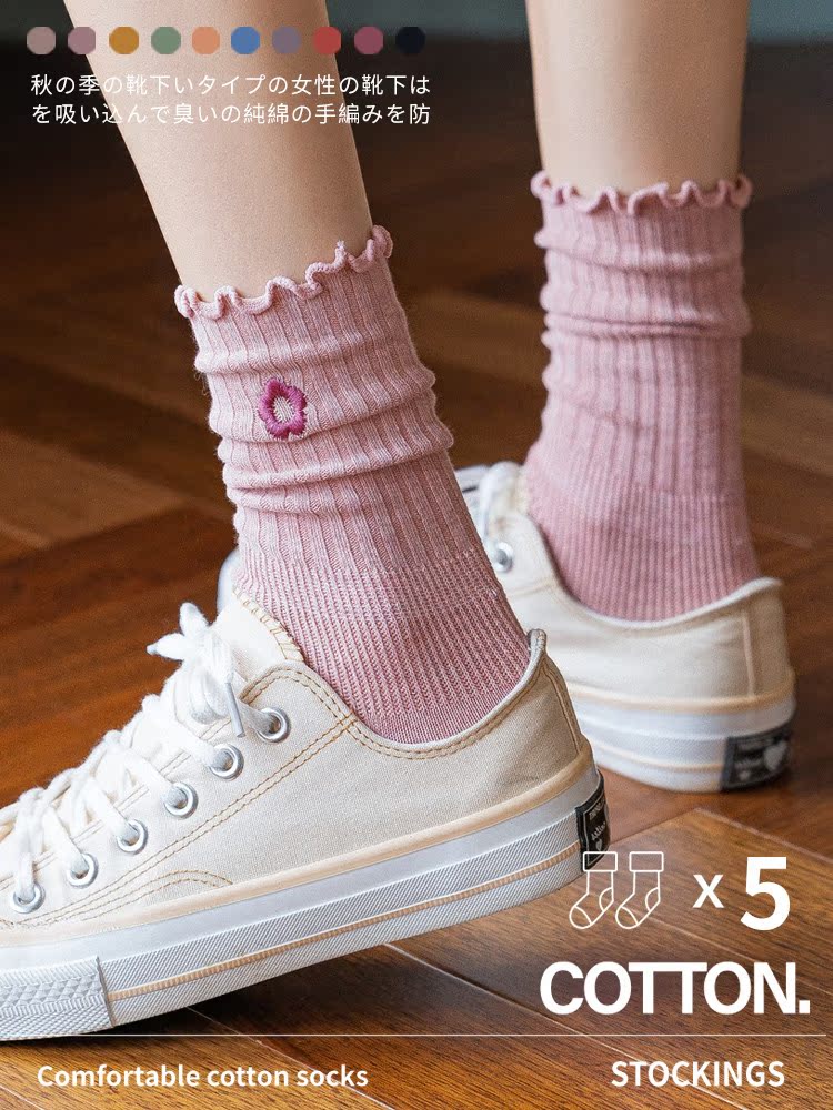 Socks women's pure cotton deodorant pile socks mid-tube socks spring and autumn thin long tube stockings all cotton sweat-absorbing four seasons mid-tube socks