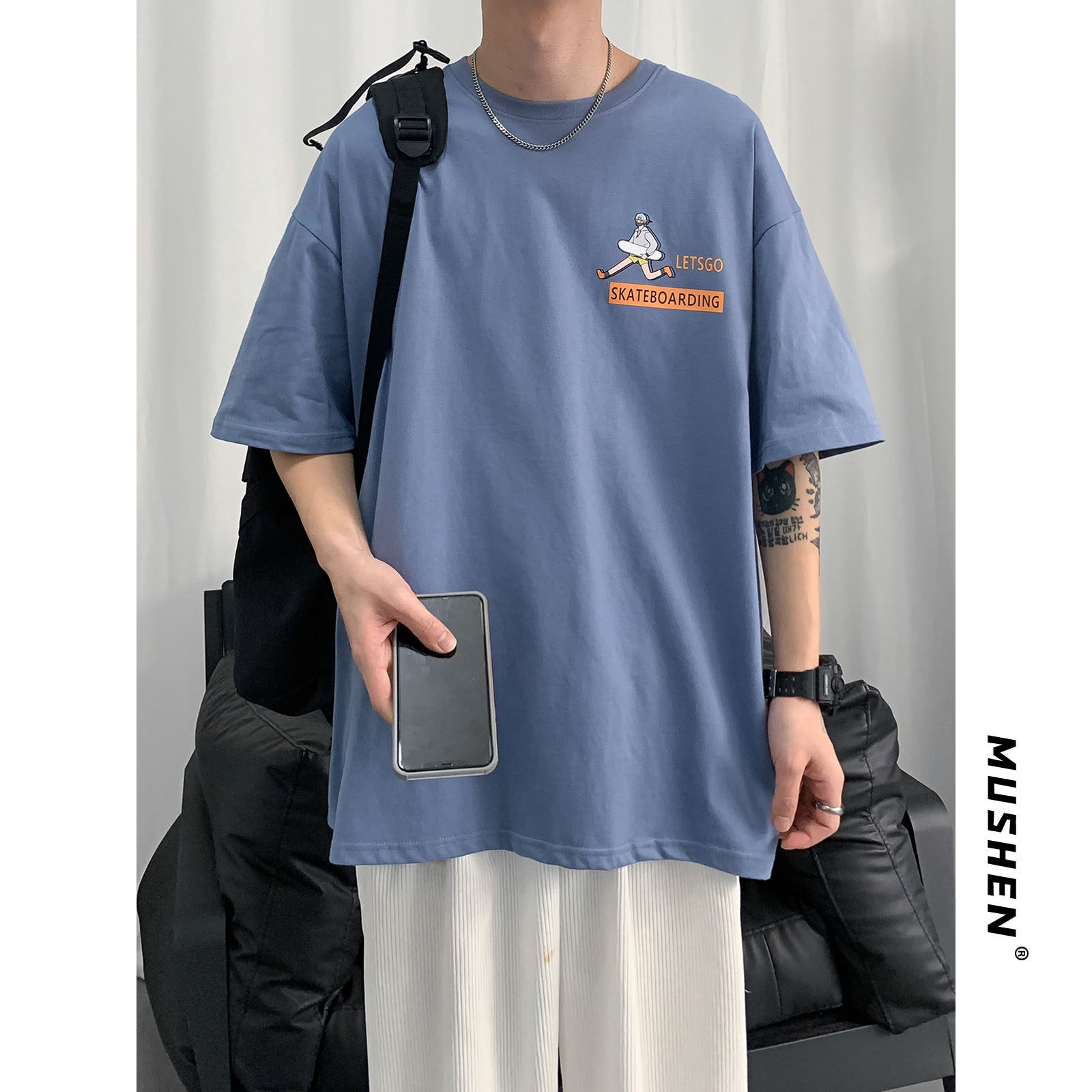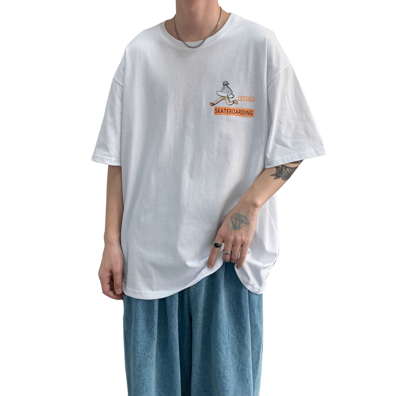 Hong Kong style Korean print short-sleeved T-shirt male trend INS summer all-match five minute sleeves loose super fire leisure bottom shirt