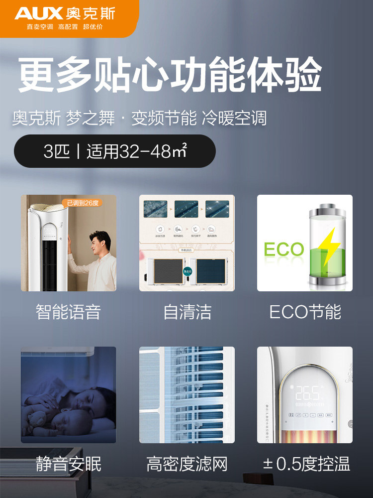 Oaks air conditioner new first-level frequency conversion large 3 hp cylinder vertical cabinet machine 72 dream dance flagship store official