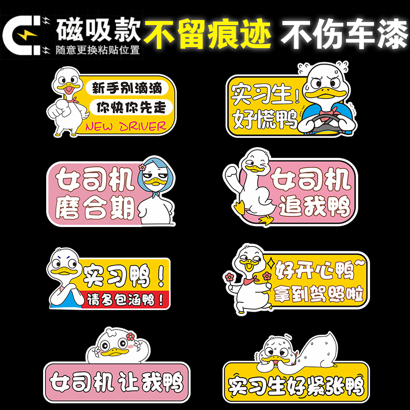 Female driver novice driving on the road internship period car sticker magnetic suction creative personality prompt sign funny sign